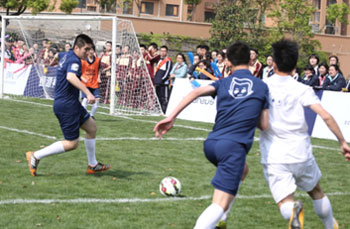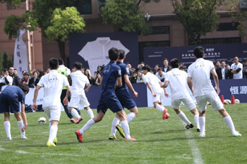 勞倫斯體育學(xué)會主席埃德溫•摩西、勞倫斯大使世界級教練法比奧•卡佩羅、世界著名運動員卡萊斯•普約爾、路德•古力特、路易斯•薩哈、阿萊克•涅莫夫、戴利•湯普森,攜手滬足壇名宿孫雯、白莉莉、浦瑋、成耀東、孫吉、謝暉和劉軍,組成的“勞倫斯巨星隊”同“小囡足球隊”展開一場別開生面的校園足球賽。勞倫斯巨星親自示范球技,悉心指導(dǎo),在原世界足球小姐孫雯等中國足壇名將的帶領(lǐng)下,“小囡足球隊”進行了賽前熱身訓(xùn)練,隨后,由巴塞羅那前隊長——著名球星普約爾開球,宣布比賽正式開始。薩哈、孫雯、浦瑋、白莉莉、謝輝、孫吉、劉軍等人悉數(shù)上陣,與同學(xué)們一一過招。