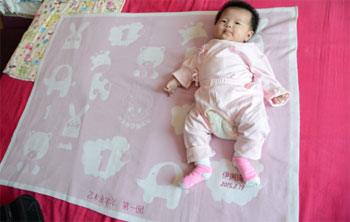 2015“羊年第一囡”獲贈小囡產(chǎn)業(yè)特制的純羊毛抱毯