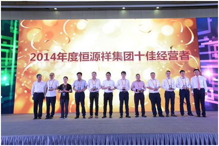 大會還總結表彰了勞倫斯項目優(yōu)秀團隊與2014年度恒源祥集團十佳經(jīng)營者,他們是:韓勝輝、郝萬林、扈藝風、黃道德、黃飛、黃磊、李于忠、沈昌明、徐貴獻、楊備,劉董與陳總為獲獎者頒獎并合影留念