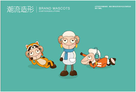 全新彩羊卡通玩偶形象從產品設計角度出發(fā),賦予角色人性化的表情、姿勢、動作,詼諧幽默的表情符合年輕人的審美趣味。
