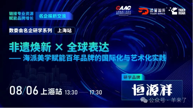 8月6日下午,中國商務廣告協(xié)會數(shù)字營銷專業(yè)委員會聯(lián)合虎嘯獎組委會、虎嘯添翼智庫、恒源祥集團共同舉辦了主題為“非遺煥新×全球表達——海派美學賦能百年品牌的國際化與藝術(shù)化實踐”的名企研學活動,通過走進恒源祥集團,相互走訪學習,交流最前沿的營銷數(shù)字化方式與商業(yè)啟發(fā),賦能品牌營銷數(shù)字化進程,為數(shù)委會各方企業(yè)提供跨界創(chuàng)新思路。