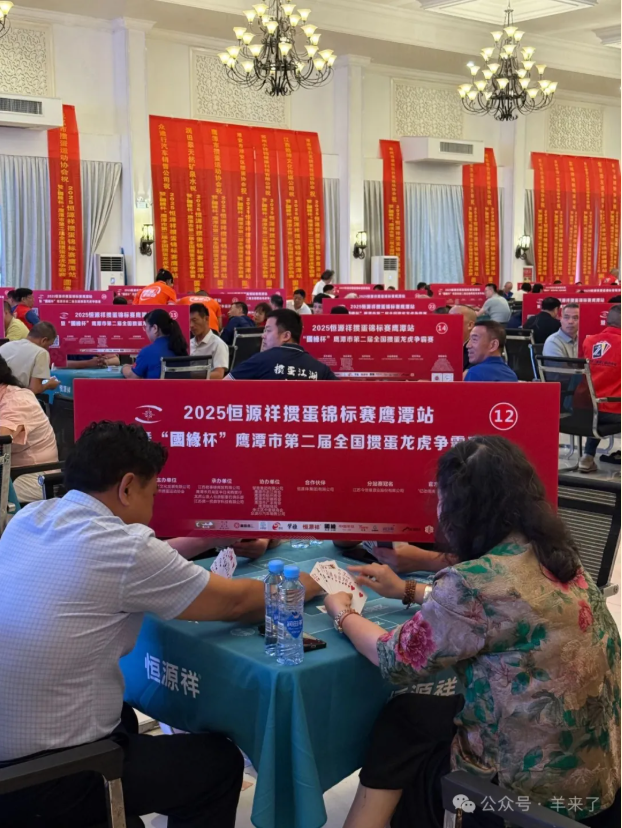 7月12日,2025 恒源祥摜蛋錦標(biāo)賽鷹潭站在鷹潭市華泉精品飯店正式開賽。本次賽事吸引了 238 名來自北京、上海、湖南、廈門、鄭州、泰州、淮安、義烏、莆田、蘇州、蚌埠、昆山等21座城市的摜蛋代表隊(duì)參與其中,共同角逐智力競(jìng)技榮耀。