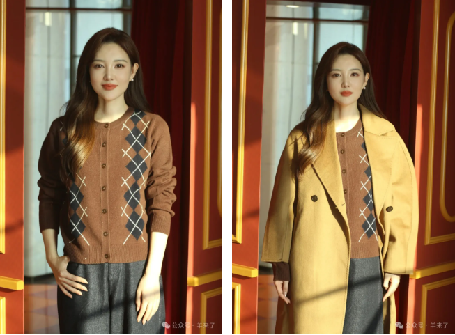 為滿足主持人與嘉賓在戶外拍攝的自然靈動(dòng)與室內(nèi)棚拍的精致得體,恒源祥深度融合海派生活美學(xué)的優(yōu)雅內(nèi)核與實(shí)用需求,甄選了包括提羊絨羊毛大衣、風(fēng)衣、羊毛打底衫、羊毛針織開衫、羊毛長褲等在內(nèi)的多款服裝。含羊毛材質(zhì)的面料,不僅承載了品牌對(duì)質(zhì)感與功能性的雙重追求,更為主持人與嘉賓在鏡頭前的專業(yè)形象注入獨(dú)特格調(diào)。