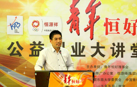 5月21日,由青年恒好理事會(huì)主辦,KAB全國(guó)推廣辦公室、恒源祥(集團(tuán))有限公司和共青團(tuán)東南大學(xué)委員會(huì)共同承辦的青年恒好公益創(chuàng)業(yè)大講堂在南京東南大學(xué)開(kāi)講。