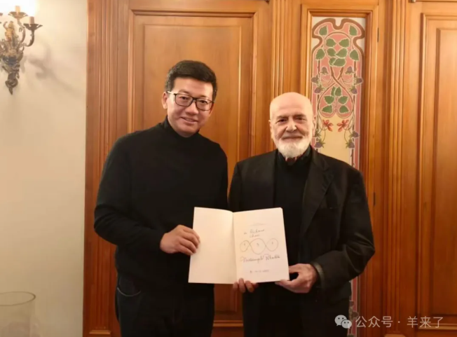 參觀后,陳忠偉董事長一行與Pistoletto大師進行了會面交流,雙方就藝術(shù)表達與設計美學展開對話。會談中,陳董介紹了恒源祥近百年的品牌歷程,強調(diào)品牌對中國傳統(tǒng)文化中匠心精神、生活之美與人文關(guān)懷的傳承與發(fā)揚。同時也分享了恒源祥長期支持奧運、推動體育融入生活的理念。這些理念,與Pistoletto大師以體育促進和平的藝術(shù)創(chuàng)作及貫穿其作品的美學關(guān)懷、對社會與自然和諧的深刻思考高度共鳴。雙方一致認為,真正的藝術(shù)與品牌精神皆應根植于人文、聯(lián)結(jié)于生活,這一共同理念為彼此的深度對話奠定了堅實基礎。