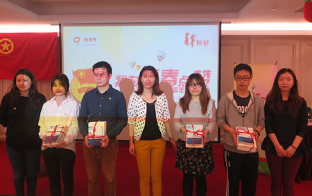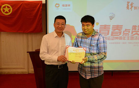 在世界紀(jì)念反法西斯戰(zhàn)爭勝利70周年及恒源祥“恒創(chuàng)100”項(xiàng)目全面推進(jìn)之際,集團(tuán)鼓勵(lì)青年員工通過“我想、我講、我做、我要”的形式說出夢(mèng)想、比拼夢(mèng)想、為夢(mèng)想點(diǎn)贊。在活動(dòng)中,集團(tuán)的青年員工們積極地分享了各自的夢(mèng)想故事,得到了在場(chǎng)領(lǐng)導(dǎo)和員工們的點(diǎn)贊,來自恒源祥服飾產(chǎn)業(yè)的青年員工黃嘉杰榮獲“最贊夢(mèng)想獎(jiǎng)”。