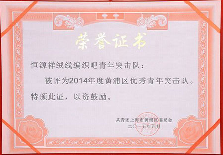 恒源祥團(tuán)委第四支部“絨線編織吧”項(xiàng)目組被評(píng)為“2014年度黃浦區(qū)優(yōu)秀青年突擊隊(duì)