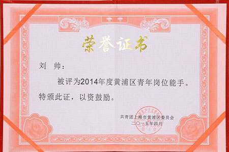 恒源祥團(tuán)委副書記劉帥被評(píng)為“2013-2014年度黃浦區(qū)青年崗位能手”