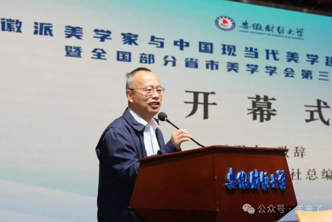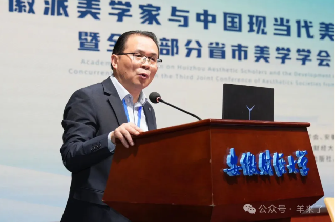 《中國當代美學文選2025》編委會主任、歐洲科學院院士、上海交大資深教授王寧致辭,由祁志祥教授代讀。王寧教授強調(diào),徽派美學家,尤其是朱光潛和宗白華這兩位蜚聲海內(nèi)外的美學大師,對中國現(xiàn)當代美學建設的貢獻是不可替代的。因而在兩位大師辭世多年后在大師的故鄉(xiāng)安徽舉辦這樣一個高規(guī)格的學術研討會是十分必要的。王寧教授講述了曾經(jīng)與朱光潛和宗白華兩位徽派美學大師的過往接觸經(jīng)歷,尤其提到朱光潛對弗洛伊德主義的引介與批判,以及宗白華對美學與語言學習的重視。朱光潛的美學思想與弗洛伊德的心理學之間存在深刻的內(nèi)在聯(lián)系,他不僅受其影響,還在文藝批評中積極吸收與運用相關理論。王寧教授同時呼吁,未來應對宗白華的美學思想進行更深入的研究與國際推廣,強調(diào)這對于中國美學的發(fā)展至關重要。