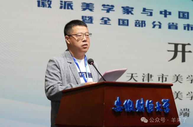 上海市美學學會會長祁志祥教授致開幕辭。祁志祥教授表示,蚌埠作為歷史文化名城,位于南北方氣候的分界線,具有重要的地理和文化意義。作為安徽省重點建設的高水平大學,安徽財經(jīng)大學藝術學院在教學和科研領域取得了顯著成就,為本次美學盛會的舉辦提供了良好的學術平臺。本次會議聚焦徽派美學家與中國現(xiàn)當代美學建設,祁教授指出,20世紀以來,徽派美學在中國的美學學科建設中發(fā)揮了至關重要的作用。許多安徽籍美學家在這一領域做出了杰出貢獻,形成了獨特的徽派美學現(xiàn)象。他提到自己不僅是徽派美學的研究者,還與多位徽派美學家有過深入交流,強調(diào)了對他們的敬意和貢獻的肯定。