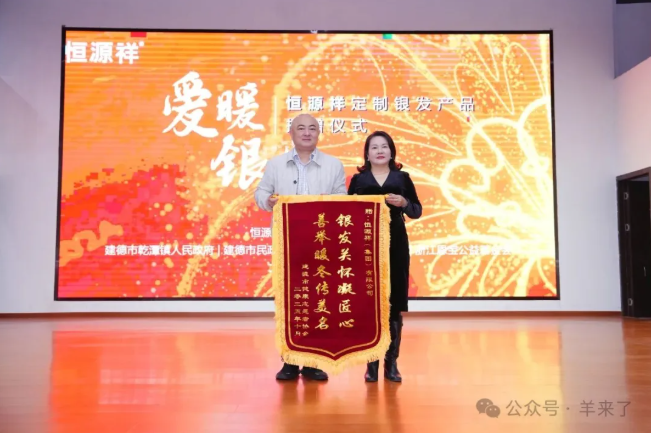 建德市健康志愿者協(xié)會(huì)創(chuàng)始人方敏在講話中,感謝恒源祥對(duì)養(yǎng)老事業(yè)的長(zhǎng)期關(guān)注支持,并代表建德市健康志愿者協(xié)會(huì)向恒源祥贈(zèng)送錦旗。