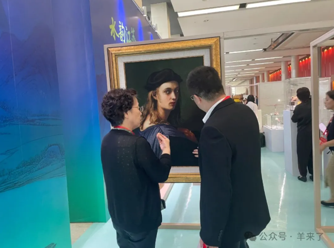 其中,來自上海絨繡項目國家級代表性傳承人、恒源祥絨繡原創(chuàng)工作室首席工藝師李薔帶來了三幅文藝復興時期的世界名畫:《賓鐸•阿爾脫維提像》《抱白貂的女子》《女預言家利比亞》。李薔老師向重慶新華社記者介紹道:“上海絨繡是自歐洲傳入的技藝,后融合蘇繡‘劈線’技術,有著獨特的‘中西交融’底色。”現(xiàn)場三幅絨繡作品極其逼真:氈帽的緞面光澤、雕塑的瑩潤質感與人物肌肉的起伏走向,均被精準捕捉,栩栩如生。