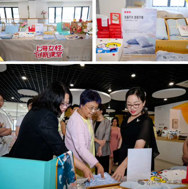 活動(dòng)現(xiàn)場(chǎng)設(shè)置了創(chuàng)新集市與非遺體驗(yàn)區(qū)。恒源祥帶來(lái)的多款融合科技、健康與美學(xué)設(shè)計(jì)的精品吸引了與會(huì)代表駐足體驗(yàn)。顧紅蕾書記向上海市三八紅旗手聯(lián)誼會(huì)會(huì)長(zhǎng)、楊浦區(qū)婦聯(lián)主席等一眾領(lǐng)導(dǎo)介紹了恒源祥精選特色產(chǎn)品,其中,涼感床笠三件套采用恒源祥自主研發(fā)的奈特綿科技面料,該面料曾榮獲“中國(guó)紡織工業(yè)聯(lián)合會(huì)科技進(jìn)步二等獎(jiǎng)”,相關(guān)產(chǎn)品已成功入圍“2025上海伴手禮”甄選輪。