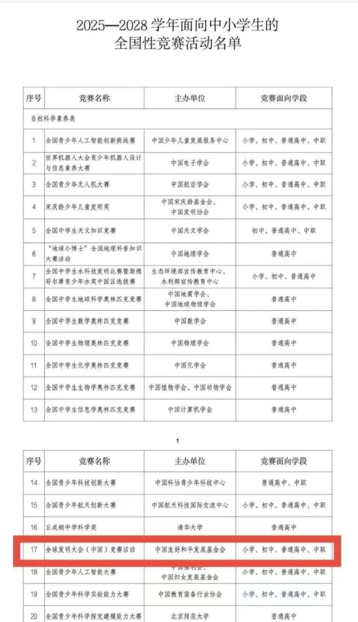 全球發(fā)明大會(huì)中國區(qū)是一項(xiàng)由中國人民對外友好協(xié)會(huì)發(fā)起、中國友好和平發(fā)展基金會(huì)主辦的全球發(fā)明創(chuàng)新競賽項(xiàng)目。經(jīng)過三年深耕,該已成為激發(fā)青少年創(chuàng)新潛能的重要平臺(tái) —— 截至 2024-2025 學(xué)年,全國已有數(shù)十萬人直接參與各級(jí)賽事,覆蓋 31 個(gè)?。ㄗ灾螀^(qū)、直轄市)的上千所學(xué)校,形成了 “人人可參與、創(chuàng)意可落地” 的濃厚科創(chuàng)生態(tài)。