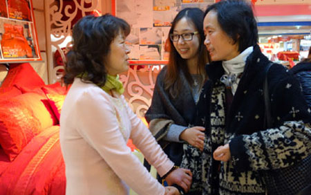 恒源祥女員工們第一站來到蘇州恒源祥家紡專賣廳,探訪恒源祥家紡女經(jīng)銷商——李文英。她熱情地向女員工們介紹了恒源祥家紡在蘇州市場的發(fā)展勢頭,還分享了多年經(jīng)營恒源祥家紡的心路歷程。即便自身腿腳不利,她仍孜孜不倦地為恒源祥家紡能在蘇州消費(fèi)者心中贏得口碑與獲得喜愛而努力。恒源祥女員工們聽完她的故事,又親眼看到家紡專賣廳上懸掛的“銷售冠軍”錦旗,不由得對她產(chǎn)生敬佩。